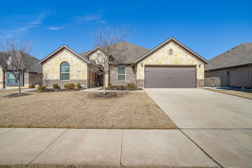 This beautiful home with a brick and stone exterior features nearly 2,700 sq ft of well designed single-story living. This home offers four bedrooms, three full baths, a study, and a desirable three-way split bedroom layout providing privacy for everyone. The open floor plan is ideal for family gatherings and entertaining. The spacious kitchen features a large island, granite countertops, stainless steel appliances, a gas cooktop, abundant cabinet and counter space, and a walk-in pantry. The living area showcases a beautiful stone fireplace and large windows that fill the home with natural light. The private owner’s suite includes an ensuite bath with dual vanities, garden tub, separate shower and an oversized walk-in closet. Three secondary bedrooms and two additional full baths complete this beautiful home. Situated on an oversized lot with a generously sized covered patio. Located in award-winning Mansfield ISD and complete with a 2-car garage. Built in 2022, this energy efficient home still has some builder warranties in place. Easy access to Hwy 287 S, shopping, restaurants and entertainment.