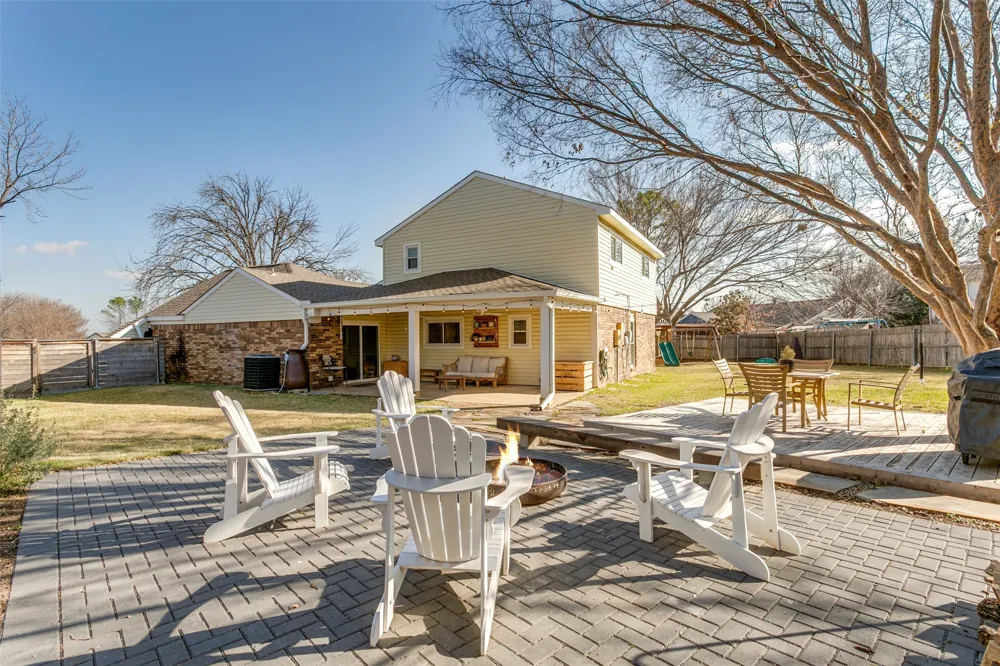 This warm and welcoming home is nestled on a quiet cul-de-sac in the established neighborhood, The Woods Addition. Featuring 4 bedrooms and 2.5 baths, this light and bright residence offers a neutral color palette, a thoughtfully planned layout, and a primary suite conveniently located downstairs. The owners have stylishly and thoughtfully updated this home. The living room stands out with its architectural lines, cozy wood-burning fireplace, and soaring ceiling, all of which add beautiful visual interest to the space. The primary bathroom has been beautifully updated with modern fixtures, dual sinks, and a gorgeous walk-in shower. Upstairs, all secondary bedrooms feature generous-sized closets, providing plenty of storage and newer carpet and paint. The spacious eat-in kitchen includes a large island and soft-close cabinetry making it ideal for cooking, gathering, and entertaining. Step outside to an amazing backyard oasis complete with a covered patio, fire-pit area, and abundant space for a pool, playset, or future outdoor enhancements. Perfectly located near Lake Grapevine, Downtown Grapevine, and just steps from CJ Hutchins Park, this home offers exceptional access to recreation and everyday conveniences. Zoned for exemplary GCISD schools, with Silver Lake Elementary just a short walk away, and close to major highways, shopping, dining, and entertainment. This delightful property truly checks every box. Come fall in love and call this home!