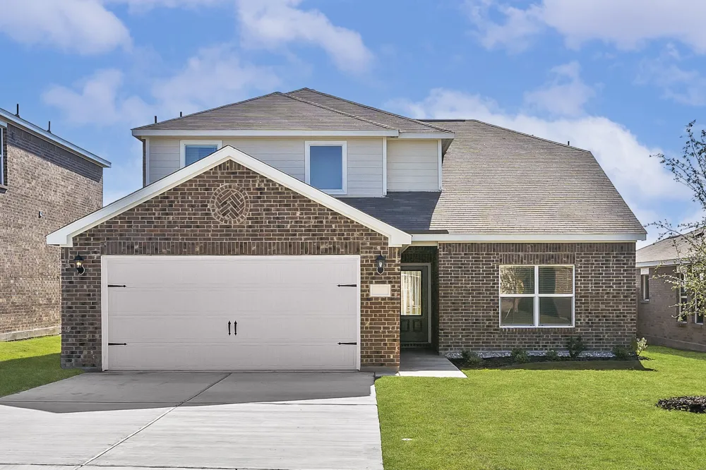 The two-story Cypress boasts four bedrooms, two-and-a-half bathrooms and an attached two-car garage on an oversized lot. The kitchen features wood cabinets, granite countertops and stainless-steel appliances, with an adjacent dining room perfect for family meals. With a seamless flow between the kitchen, dining and family rooms, the spacious living areas offer room for entertaining, from football watch parties to cozy movie nights. The downstairs master suite includes a bedroom, bathroom and walk-in closet. Upstairs, the secondary bedrooms each have walk-in closets, providing additional storage. Other storage options, including a spacious pantry, numerous cabinets and linen closets, are also spread throughout the home for extra storage and organization.