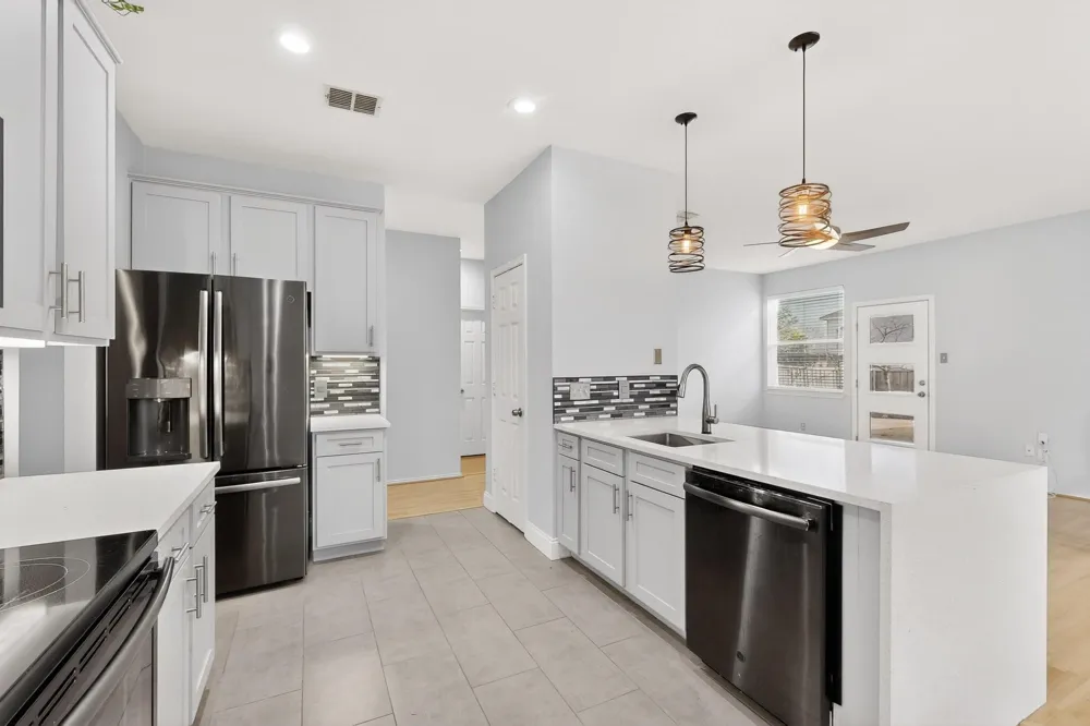 Beautiful home located in the very desirable community of Lost Creek Ranch in Allen with Exemplary Schools! Step inside to a welcoming dining room with a modern decorative light fixture and French doors leading into a flexible room that works well as an office or additional living space. Laminate flooring carries through the common areas for easy maintenance and a cohesive look. The updated kitchen features quartz counters, stainless steel appliances, a decorative backsplash, and a breakfast bar for casual meals. The living room includes an electric fireplace. Private primary bedroom with a bathroom that includes quartz counters, dual sinks, and an oversized frameless shower with a waterfall feature. The walk-in closet includes a floor mounted safe. The secondary bathroom is also updated. Located minutes from Eagle Stadium & close to Allen Premium Outlet, Village at Allen & Fairview Town Center for tons of shopping & dining options. Lost Creek Ranch features a community pool, jogging trail, four parks with playgrounds, & fishing ponds w~fountains. Fridge, washer and dryer included!