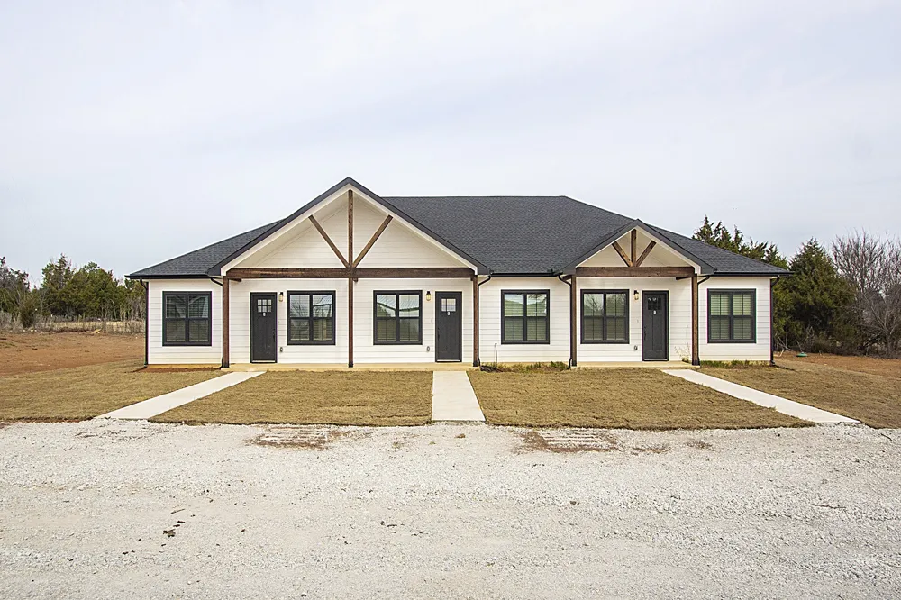 New built, you have to see this beautiful and new construction home. No detail was missed in this two bedrooms two baths in this custom townhouse with granite tops, gorgeous kitchen island, custom cabinetry with plenty of storage, luxury vinyl flooring, large living room, back patio to sit and watch the beautiful farm scenery that allows you to enjoy the country life while still being very close to restaurants and shopping, just minutes from downtown Whitesboro and Sherman, and centrally located to Hwy 82, 75 and 35. Quick trip to Lake Texoma and the DFW Metro.
