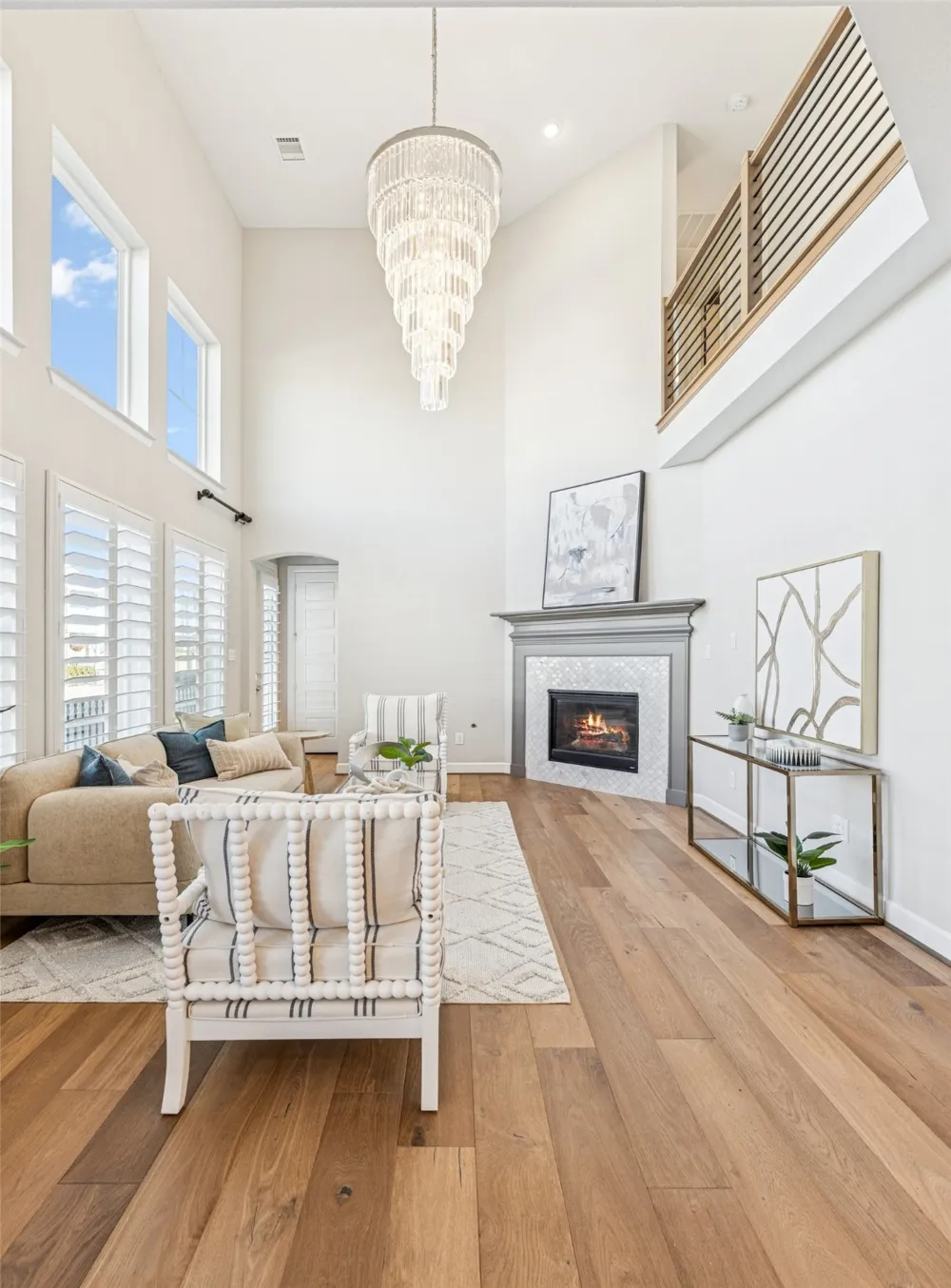 Located on a corner lot with scenic canal and walking path views, this beautifully appointed home offers refined living in the heart of the Hometown Canal District in North Richland Hills. Designed with both style and functionality in mind, the residence features 3 bedrooms, 2.1 baths, 2,288 square feet, and a 3-car tandem garage, all complemented by thoughtful upgrades throughout. The main level showcases hardwood flooring, designer lighting, and plantation shutters, creating a timeless and elevated aesthetic. The chef’s kitchen is a standout with floor-to-ceiling shaker cabinetry, an oversized granite island, stainless steel appliances, and generous storage—ideal for both everyday living and entertaining. The kitchen flows seamlessly into the living room, where a 20-foot ceiling, dramatic wall of windows, custom fireplace, and statement chandelier create a light-filled, impressive gathering space. A dedicated office or formal dining room on the main level adds flexibility for work or hosting. Upstairs, a second living area provides additional space for relaxation or media use. The primary suite offers tranquil water views, while the spa-inspired ensuite bath features a walk-in shower with dual rain showerheads and elegant marble herringbone tile. Two secondary bedrooms share a full bath, completing the upper level. Residents of the Hometown Canal District enjoy a true lifestyle community with miles of walking and biking trails, parks, green spaces, playgrounds, and easy access to neighborhood dining and shopping. Ideally positioned near major highways, this home offers convenient access to Fort Worth, DFW Airport, and surrounding business and entertainment hubs—while maintaining a peaceful, picturesque setting. This is a rare opportunity to enjoy luxury finishes, water views, and a walkable community lifestyle all in one exceptional home.