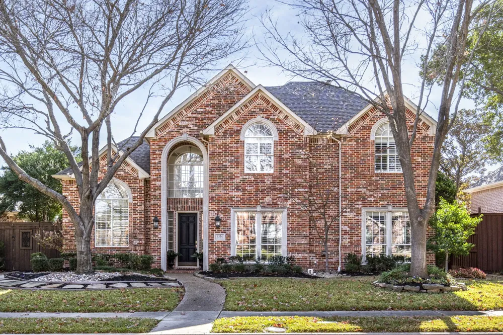 Welcome to this updated West Plano gem Glenhollow Estates. Ths home has been lovingly refreshed from top to bottom where a truly amazing floorplan and soaring architecture take center stage. The heart of the home is the stunning living room, with soaring ceilings, perfectly complemented by a full wall of floor-to-ceiling windows. This impressive area features a wood-burning fireplace with a custom-crafted mantle and flows effortlessly into a gorgeous kitchen, fully remodeled in 2020 with a large island, a breakfast bar, and sleek quartz countertops. You’ll love cooking on the gas cooktop while looking through the window above, and the cozy breakfast nook with its bay window seating. From the moment you step onto the hand-scraped hardwoods, you’re greeted by fresh paint throughout, a sun-drenched flex space and an elegant dining room where decorative lighting and classic crown molding truly elevate the space. With two sets of stairs leading to the second level, the home offers a seamless flow and endless possibilities. Private first-floor primary suite offers views overlooking the pool and am en-suite bath featuring separate vanities, a jetted tub, and a massive walk-in closet. The first-floor guest suite with en-suite bath is also ideal for a quiet home office. Upstairs, recently installed carpet leads to two additional bedrooms with vaulted ceilings and a massive, versatile space that could be a gameroom, media room, exercise room, or even an extra bedroom! Outside, life feels like a vacation with a sparkling resurfaced pool, a private firepit courtyard, and a dedicated dog run. This home offers the perfect blend of architectural beauty and total peace of mind. With its combination of sophisticated design, significant recent upgrades, and an unbeatable West Plano location, this home is a must-see that's ready for you to move in and start making memories.