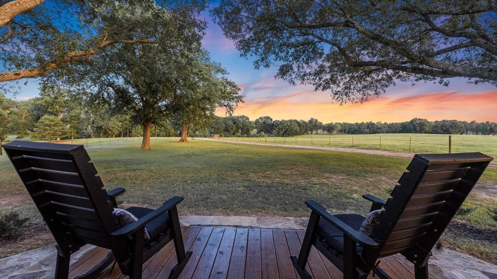 Triple C Cattle Ranch in Carthage, Texas is a rare East Texas gem offering seventy-nine acres of beautiful rolling pastures, a hilltop ranch home surrounded by massive ancient oak trees with magnificent views from under the shaded canopy. To enhance your outdoor experience, enjoy the gunite saltwater pool with flowing water features and beautiful underwater lighting. The pool side stone and rough cedar Cabana serves as a space to lounge, relax or entertain with beautiful lighting for nighttime enjoyment. The outdoor space includes restroom, wood burning fireplace, kitchen area, bar, extra storage space and full size refrigerator. At the end of the winding paved driveway sits the ranch house overlooking the rolling landscape in multiple directions. The 3186 square foot two story home features four bedrooms, three and half bathrooms, family room with fireplace with insert, formal dining room, country kitchen, sunroom, game room, office or library space and massive tinted windows. There is a fabulous deck off the living room with a picturesque view of the ranch, which is perfect for outdoor entertainment or just relaxing with your favorite beverage as the evening sun sets. The shaded front porch is ideal for morning coffee as the sunrises, and the day begins. The lush green fenced and cross fenced pastures are perfect for cattle grazing. There is a small lake for watering livestock, wildlife and wetting a hook for some fishing. The front pasture with creek is perfect for summer livestock grazing. Also included is a haybarn and covered parking for tractors and implements. Behind the house is a metal shop building and man cave with overhang for parking and storage. The working pens with squeeze chute is in place making Triple C Cattle a turnkey operation. The ranch is found a short distance from Carthage, Texas. Carthage is the county seal of Panola County and has a population of 6,569 as of the 2020 census. Shopping includes Texas’ famous HEB Grocery Store.