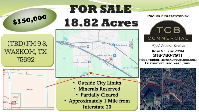 We’re proud to present a fantastic opportunity to own 18.82 acres of land just outside the city limits of Waskom, Texas. Located approximately *ONE* mile from I-20, this property offers excellent accessibility, while maintaining the peace and privacy of a rural setting. This area is partially cleared and contains ample road frontage along FM 9 South. This ideal tract offers versatility for residential, recreational, agricultural, or investment use, with convenient access and strong potential for development or a private homesite. Enjoy the flexibility of being located outside the city limits, allowing you to create your vision with fewer limitations.Minerals are reserved, and the property is attractively priced at $150,000, making it a compelling option for buyers seeking land in a growing East Texas corridor. Whether you’re looking to build, invest, or simply enjoy wide-open space near major transportation routes, this property offers location, value, and opportunity.